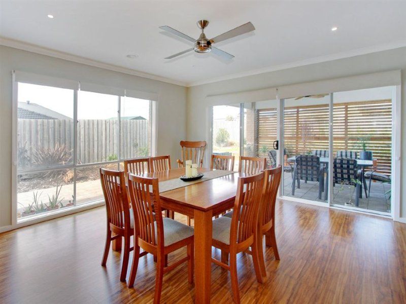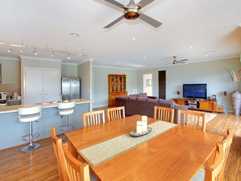 Situated on a generous allotment of 840m2 (approx) in a quiet family orientated location sits this 2 ½ year young ultra mod residence, overlooking the newly completed wetlands, giving you a peaceful parkland view from your doorstep and offering the perfect place for children & pets to exercise, while parents relax. Some of its many features include 4 generous bedrooms with a superb master bedroom that has a glamorous en-suite and walk in robe. Each of the other 3 bedrooms contain BIR. The formal lounge and main bedroom overlook the wetlands. On entering the large sunny open plan kitchen/living/dining room, you note the quality s/s appliances, 900mm Baumatic oven, and Caesar stone benchtop. Additional workspace and storage, ducted heating, ceiling fans, paved alfresco dining and oversized double garage with rear vehicle access and workshop all ensure ease of family living and entertaining. Close to St McCartan's Junior College and Mornington Secondary College, with public transport close by, homes in this area are highly sought after and an inspection will not disappoint.