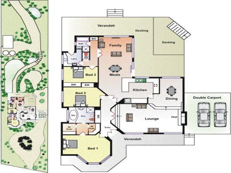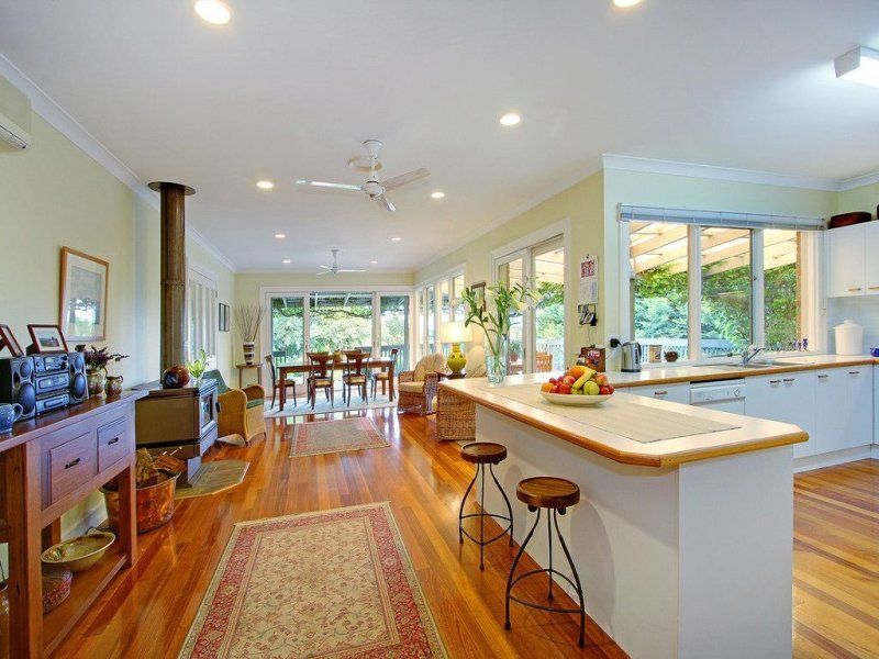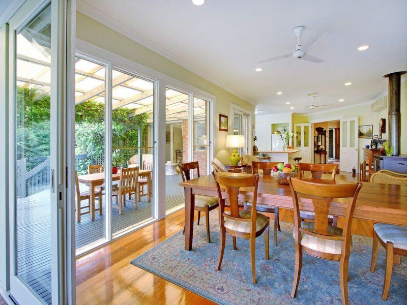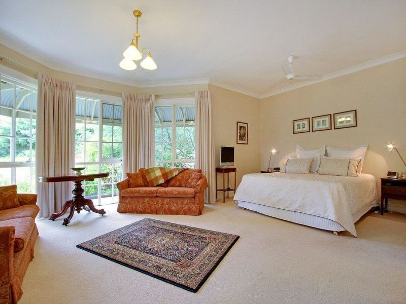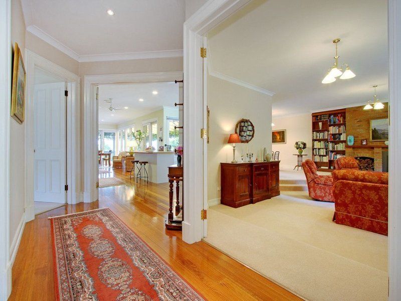 From the moment you arrive at the front entrance to this unique home you will be impressed. Set in amazing landscaped gardens, this home represents quality and seclusion. The circular driveway leads to a double door entrance, 9' ceilings, polished floor boards, ducted heating and a beautiful sunken lounge with a gas log fire surrounded by built in bookshelves. The king size main bedroom has bay windows, double WIR and full ensuite complete with spa. There are formal and informal dining spaces, 2 more large bedrooms (BIR in each), large functional open plan kitchen with quality appliances, reverse cycle airconditioning, plus ceiling fans throughout. Sliding doors lead from the informal living area to the covered all weather verandah draped with ornamental vines, creating shade in summer and allowing light through in winter. The home is elevated and offers distant bayviews across an ever changing rural outlook.