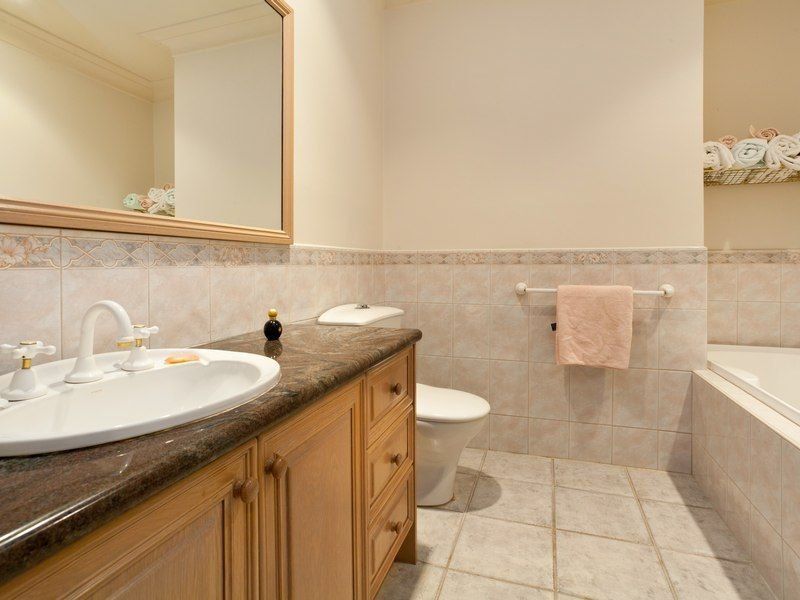 The central kitchen features granite benchtops and a Miele dishwasher, while the master bedroom has walk-in robes, an attractive garden aspect and ensuite complete with soothing spa bath for a touch of luxury.