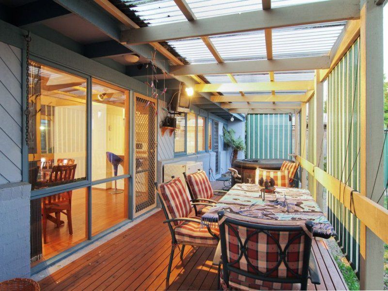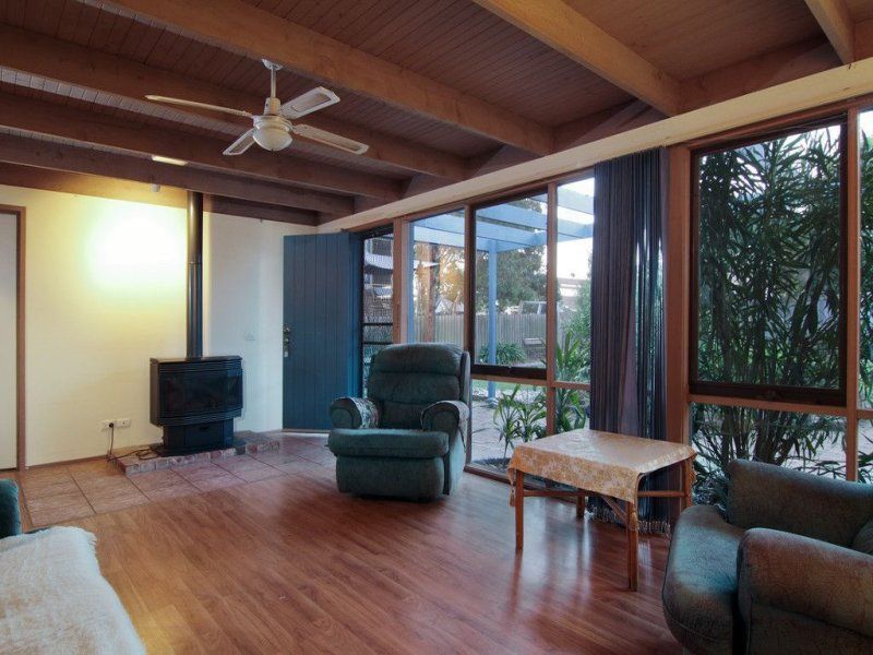 The perfect home for kids, parties and pets, this delightful Marklew-designed single-level residence is the ideal scenario for a young family through to the buyer in search of a sea-change. Designed for entertaining, high fences enhance the sense of security and privacy; while indoors raked ceilings with highlight windows flood the house in natural light. An L-shaped living and dining area with contemporary floating flooring opens out to the front garden with paved alfresco dining and a rear covered deck complete with spa. The adjoining kitchen is bright and light with a dishwasher and outdoor aspect. Three bedrooms, all with built-in robes and desks, include the main bedroom with ensuite access to the sky-lit bathroom with a separate toilet. A freestanding wood heater ensures cosy winter nights; while gas wall heating, a great-size shed and double carport with a garage door add handy assets in this hidden address close to the beach & Bentons Square.