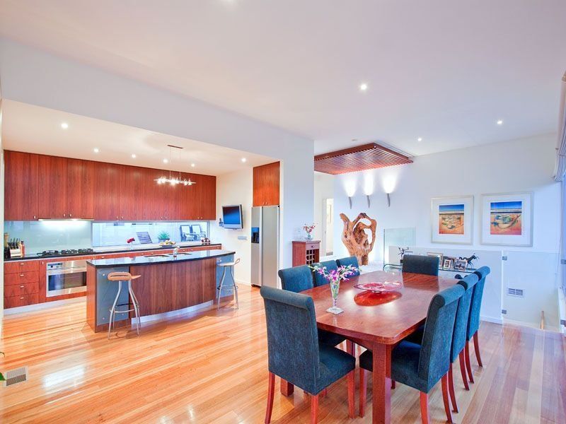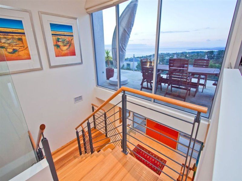 Designed by renowned architect Graham Jones and built by an award winning Victorian builder, this striking, modern home is positioned in one of Mount Martha's most desirable locations overlooking the city skyline and the picturesque coastline. A testament to clever design and an appreciation of quality and vision allow this home to blend perfectly into the landscape. The spilt level floor plan caters to multiple living needs from large scale entertaining to the fully fitted study and studio suitable for a home based business. Offering four spacious bedrooms, all with walk in robes, the master suite is complete with large ensuite, balcony and panoramic views of the bay. Open plan kitchen/meals area, family room opening out to expansive balcony taking in the spectacular view and a separate second living area. The impressive list of features includes; alfresco dining area with in-ground salt chlorinated, solar and gas heated pool, remote DLUG with internal access, butler's pantry, quality stainless steel appliances, granite bench tops, zoned ducted heating and refrigerated cooling, gas log fire and a wine cellar. This home is a true showpiece, an inspection is sure to impress!