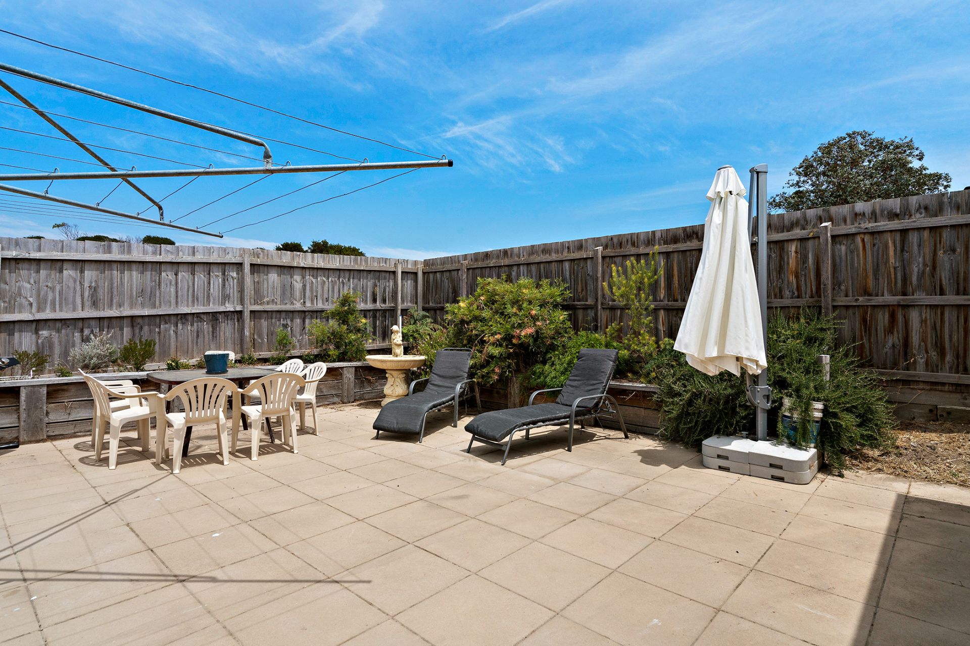 - Outside provides a low maintenance yard with beautiful fruit trees